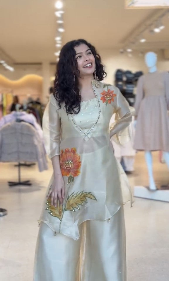 DESIGNER EMBROIDERED TOP PLAZZO AND DUPATTA