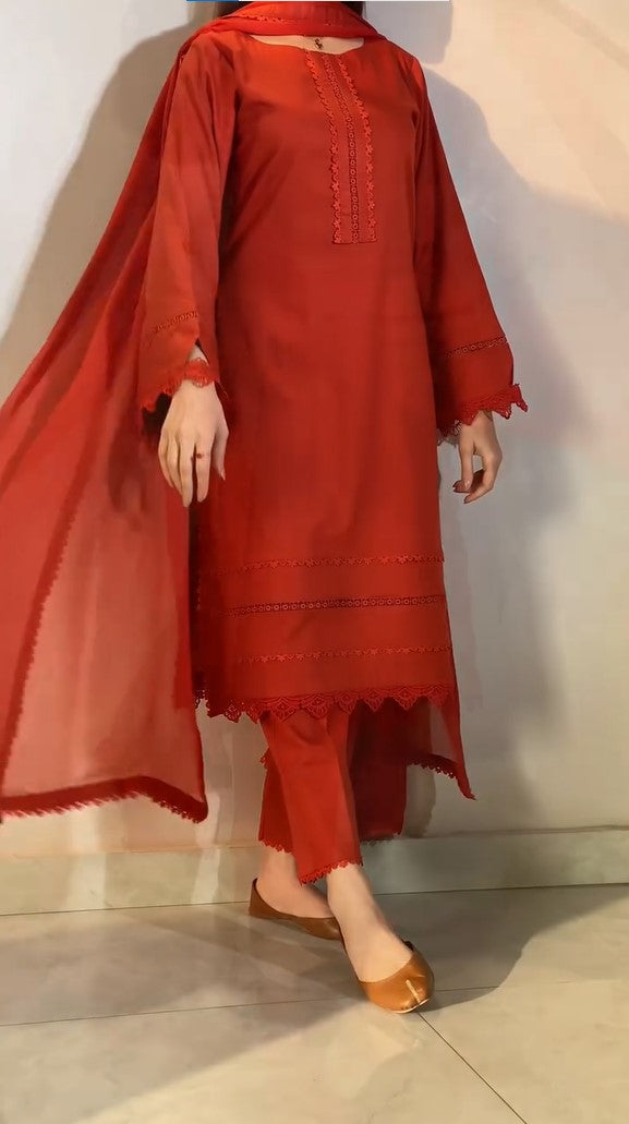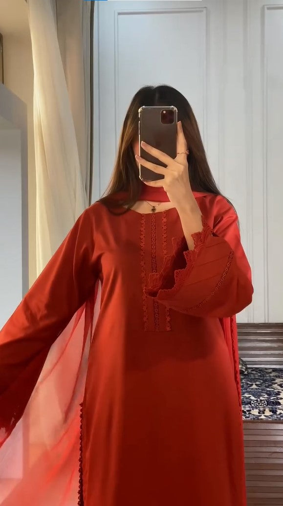 Semi Pure Chiffon Dupatta With 4 Side Lace Attached (Ready To Wear)
